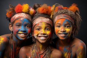 festive gray contrast vibrant tradition vibrant colors festival cultural diversity hyperrealistic painted expressions face paint holi contrast holi paint expressive holi celebration celebratory faces painted faces holi adornment celebration neutral background colorful colorful expressions faces backdrop gray background colorful faces canvas children festive mood hd cultural gray canvas festive backdrop chromatic contrastImagine Buddy