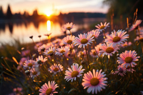 Daisies catching first light of day, beautiful sunrise image