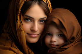 A muslim mother and her young child captured in a heartfelt embrace, ramadan and eid mubarak images