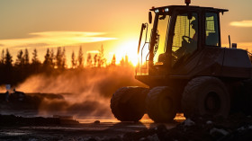 Bulldozer operator working in the sunset, industrial machinery stock images ai, midjourney prompt ideas