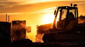 Construction worker on the job at dusk, industrial machinery stock images ai, midjourney prompt ideas
