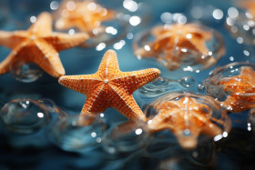 Starfish floating in the serenity of an indoor pool, summer landscape image