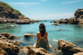 woman sea rocks seaside serenity coastal tranquility ocean view sea waves seafront leisure swimming rocky perch rocky seashore seaside serenade coastal living coastal contemplation woman beachside relaxation coastal meditation ocean retreat woman on rocks woman in nature lounging rocky retreat beach relaxation coastal beauty rocky shore beachside repose woman by the sea relaxation seaside contemplation coastal scene coastal escape ocean dip seaside reposeImagine Buddy