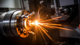 Cnc turning machine cutting metal workpiece, industrial machinery stock images ai, midjourney prompt ideas