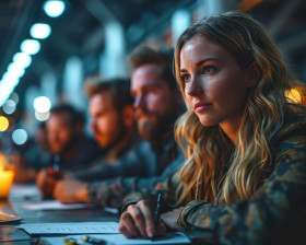 Team collaboration during a conference focused on discussing paperwork, business meeting photo