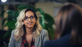 woman talking personal interview office job discussion hiring interview hyperrealistic hd job office setting professional employment process candidate interviewee woman employer employment opportunity recruiter meeting communication interaction work career corporate dialogue workplace talk conversationImagine Buddy