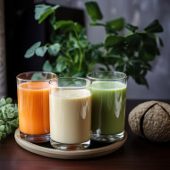 cups colors orange white green mixed milk vibrant tasty blend colorful delightful indian republic august celebration independence day hyperrealistic hd abstract liquid hues three drink creative different beverage refreshment concept visually appealing art cups summer unique refreshing combination republic dayImagine Buddy