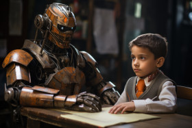 robot school desk kid student education learning technology futuristic artificial intelligence notebook robotic technology hyperrealistic hd elementary gadget teach innovative smart modern literacy knowledge academic student life back to school child electronic study classroom innovation futureImagine Buddy