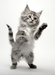 grey miniature kitten white background cat small pet lifestyle cute animal hyperrealistic hd domestic feline adorable young fluffy pose photography tiny isolated studio sweet charming playful innocence domesticate portrait furryImagine Buddy