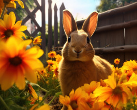 rabbit flower bed garden playful cute pet lifestyle animal hyperrealistic hd garden scenery hiding seasonal greenery adorable nature curiosity landscape fluffy colorful park flora botany fauna outdoor spring blooming joyful charming wildlife small naturalImagine Buddy