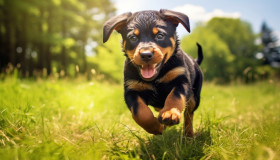 funny rottweiler puppy running grass playful pet lifestyle cute animal hyperrealistic hd playful pup play active canine green outdoors joy young happy nature dog energetic field sprint running dog outdoor funImagine Buddy