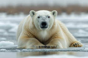 Polar bear rests on ice peacefully enjoying the arctic solitude showcasing the majestic beauty of the frozen wilderness, bears and arctic wildlife concept