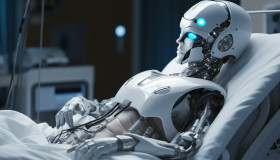 white robot hospital bed healthcare technology artificial intelligence machine medical care ai future automation hyperrealistic hd resting recovery equipment digital humanoid futuristic innovation patient reflection observation robotic aiImagine Buddy