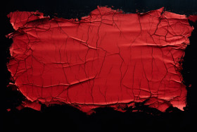 Red paper on black background, aged parchment texture concept