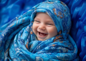 Newborn baby in soft blue towel, ai baby prompt, baby ai art