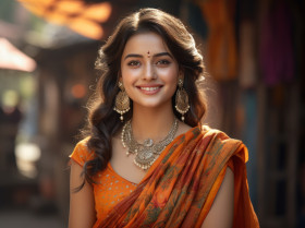 beautiful indian girl earrings pose smile sari traditional gudi padwa marathi festival hyperrealistic hd portrait ethnic cultural attire ethnic jewelry cultural fashion elegant joyful cultural beauty young happy vibrant traditional dress posing stylish smiling picture traditional clothing photography charming photo sessionImagine Buddy