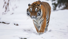 siberian tiger snow walking majestic wildlife nature wild animal wildlife day hyperrealistic hd cold habitat predator big cat powerful wilderness graceful ice conservation fur creature rare endangered winter feline beautiful carnivoreImagine Buddy
