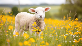 lamb field buttercups cute grazing sunny sunshine wildlife wild animal wildlife day hyperrealistic hd animal life adorable peaceful grass rural joyful farm outdoors green scenery meadow countryside vibrant spring young nature animals pastoralImagine Buddy