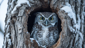 northern hawk owl tree hollow wildlife nature wild animal wildlife day hyperrealistic hd gaze habitat bird photography bird wilderness outdoors ornithology perched outdoor majestic wildlife photography feathered friend birdwatching vigilant natural owl species observant observation eyes bird of prey tree birding forest wildlife observationImagine Buddy