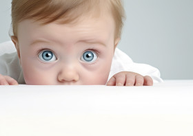 A baby is laying on top of a white surface on white background, ai baby prompt, baby ai art