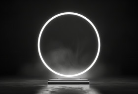 Glowing light bulb on a tabletop stand, brand positioning concept