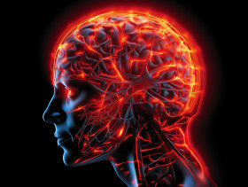 The human head with the brain on it was causing panic, health and medical stock image