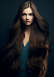 A young woman has dark and heavy long hair, beautiful girl with long hair