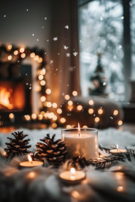 livingroom cozy candles table christmas decorations festive holiday celebration new year cheer warm joyful xmas cheerful bright elegant vibrant seasonal traditional happy charming beautiful ambiance inviting winter delightful eventImagine Buddy