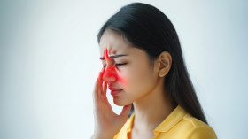 indian woman nose pain discomfort nasal issue facial white background health irritation sensitivity symptom treatment wellness therapy ache soreness condition inflammation facial pain care distress reaction healthcare appearance problem issue visible nose pain medical distress physical symptom reactionImagine Buddy