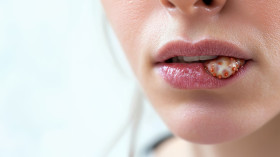 woman lips cold sores white background oral health skin condition texture appearance close up clarity surface blemish visible dermatology skincare symptom discomfort herpes rednessImagine Buddy