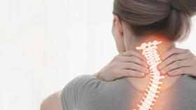 woman neck pain yoga pose intense white background stiffness discomfort syndrome causes treatment joint health body muscle stress strain therapeutic injury physical therapy red glowing health condition therapy plan joint pain relief red highlight flexibility workout strain relief body discomfort injury treatmentImagine Buddy