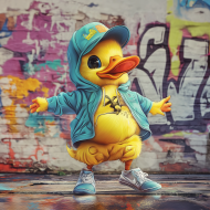 duck yellow breakdancing graffiti street cute urban art dance hiphop playful vibrant street art colorful character dynamic cartoon funkyImagine Buddy