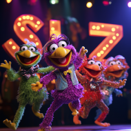 muppet puppets dancing 3d logo characters animation playful fun colorful creative mascot logo design whimsical entertainment movement cartoon vibrant comedy joyful puppet art digital design surreal puppet show performance motion dynamicImagine Buddy