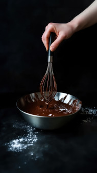 whisk chocolate liquid smooth bowl mixing process hands cocoa treats chocolate hamper delicious culinary treat chocolate making workshop tools homemade ingredients closeup stirring chocolate workshop chef dessert gourmet confectionery sweet making chocolate bouquet verticalImagine Buddy
