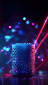 voice assistant smart speakers glowing geometric patterns dark background voice control futuristic technology modern automation ai device assistant digital commands interactive wireless system smart home sound audio network innovation virtual tech advanced illuminated vibrant glowing concept digital verticalImagine Buddy