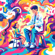 doctor examining child clinic pediatric healthcare cartoon bold outlines exaggerated expressions dynamic poses drawing healthcare medicine doctor patient pediatrician clinic visit child health healthcare profession kids medical young patient doctor-patient care pediatric doctor hospital hospital visit child examination health care kids doctor medical care healthcare settingImagine Buddy