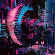 gears turning factory steel night glitch art digital distortion fragmented visuals industrial machinery power factory scene technology metal workshop work steelworks abstract digital glitch design urban machinery movement engineering industry automation heavy machinery night work construction factory equipment mechanical blue-collar manufacturingImagine Buddy