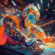 robot arm machine technology artificial intelligence automation future industry innovation circuit board electronic assembly manufacturing digital engineering programming futuristic bold contrast artistic dynamic colorful vibrant advanced mechanical system modern process industrial precision cyberneticImagine Buddy