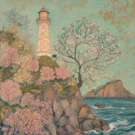 lighthouse rocky cliff ocean waves floral motifs patterns kangra painting kangra art kangra style standing tall sea coast lighthouse art structure nautical marine scenery waves crashing landscape lighthouse silhouette ocean view coastline coastal waves adventure beacon maritime rugged isolation detailed nature tranquilImagine Buddy