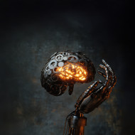 robotic hand clock gears crafting glowing metal brain mechanical technology life found object art 3d design intricate creativity sculptural craftsmanship futuristic innovation engineering detailed artificial metalwork brain sculpture glowing art advanced technology fusion creativity modern robotic art conceptual brain design fusion artImagine Buddy