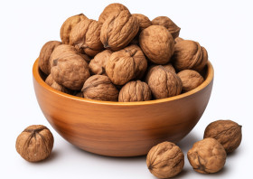 Walnuts in a bowl on a white background, walnuts image