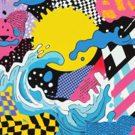 waves crashing force sun power movement fluid patterns memphis design stylish bold water ocean vibrant nature energy abstract dynamic flow artistic contemporary colorful motion splash striking modern trendy sea artistic illustration decor creativity uniqueImagine Buddy