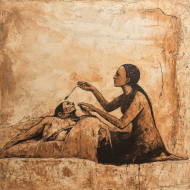 healer wounded hunter cave painting survival chauvet lascaux early humans medicine treatment healing tribal prehistoric ancient human care compassion injury cave art medical skill first aid therapy wounded art tribal rituals survival instincts pain recovery health body care physical human needs protectionImagine Buddy