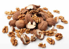 walnut nut seed snack half leaf food isolated forest walnuts macro slice studio pile clipping raw isolate cut isoled white group broken walnut white side view closeup piece walnut leaf object imaginebuddyImagine Buddy