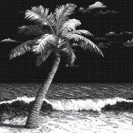palm tree swaying ocean waves tropical breeze beach summer island nature travel vacation resort relaxation peaceful exotic coconut paradise shoreline sand blue sunny warm outdoors coastal ascii asciiart asciiimage art collection digital design illustrationImagine Buddy