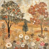 Trees and flowers layered in a scenic paper collage using decoupage techniques, a nature inspired design created with decoupage paper, ideal for decorative projects