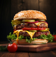 cheeseburger burger hamburger beef cheese double banner food fast panoramic onion meat tomato sandwich panorama pano lettuce meal classic table snack wooden bun patty burgers wide copy space freshImagine Buddy