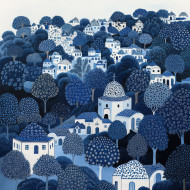 hills trees rolling blue white tile azulejo credence arabesco landscape scenic nature intricate beauty countryside traditional portuguese european heritage elegant detailed design ornamental classic pattern culture tranquility rural aesthetic mosaic artistry greenery forest decorative timeless peacefulImagine Buddy