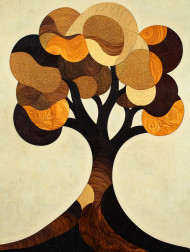 A tree created with layered marquetry wood grain textures, featuring organic details and flowing patterns, marquetry inlay highlights the artistic beauty of natural wood design