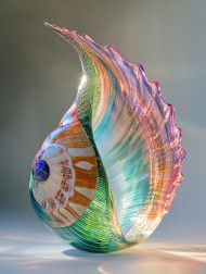 seashell graal glass orrefors graal orrefors graal vase oceanic delicate translucent layers texture depth artistic sculpture detailed decorative marine craftsmanship elegance collector handmade nature frosted luxury unique fine art glasswork transparent smooth refined coastal curvaceous sea intricate clear sophisticated ornamentImagine Buddy
